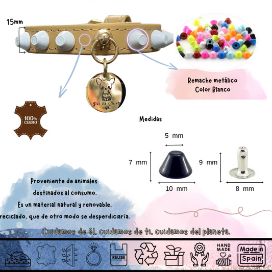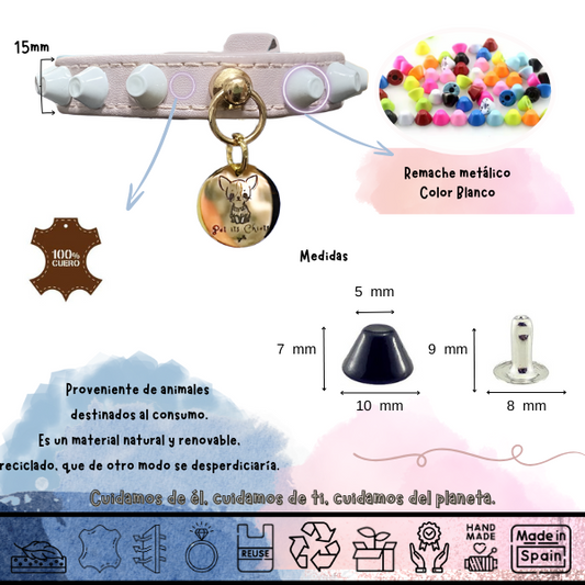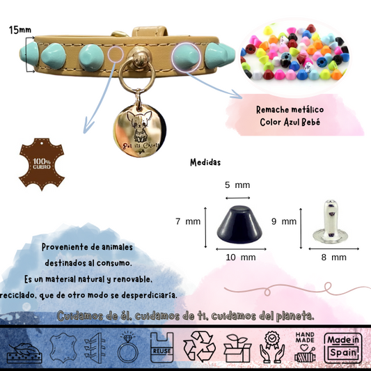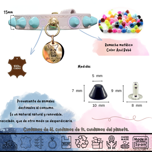 Graciosísimo mi Pipo con su collar de niño malo. Me gusta mucho el color azul con los pinchos en blanco.