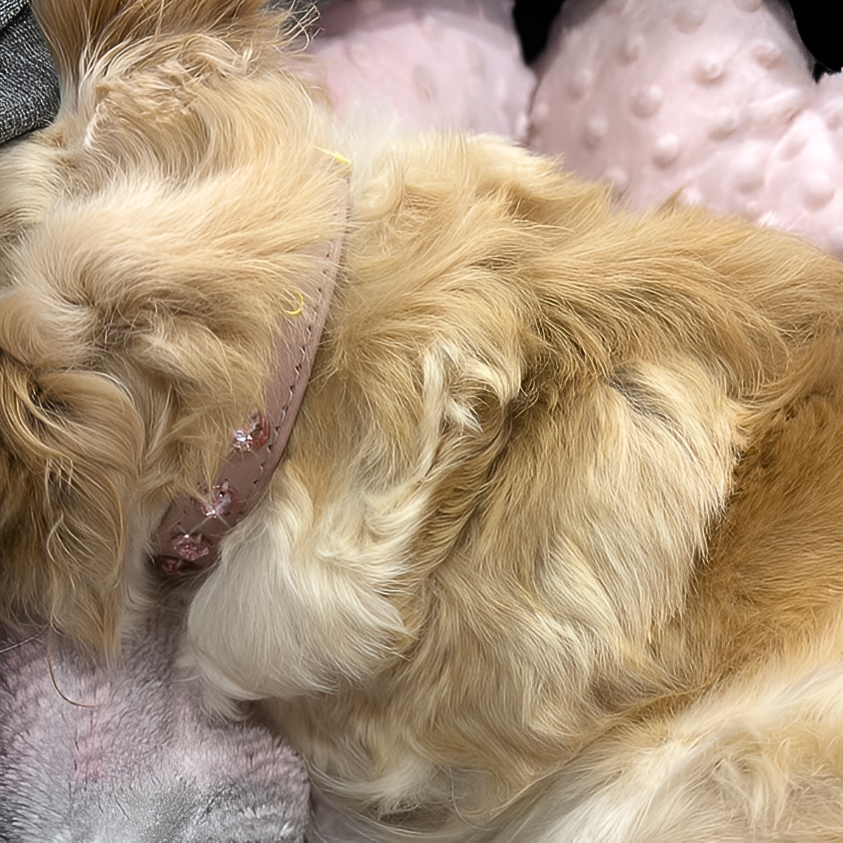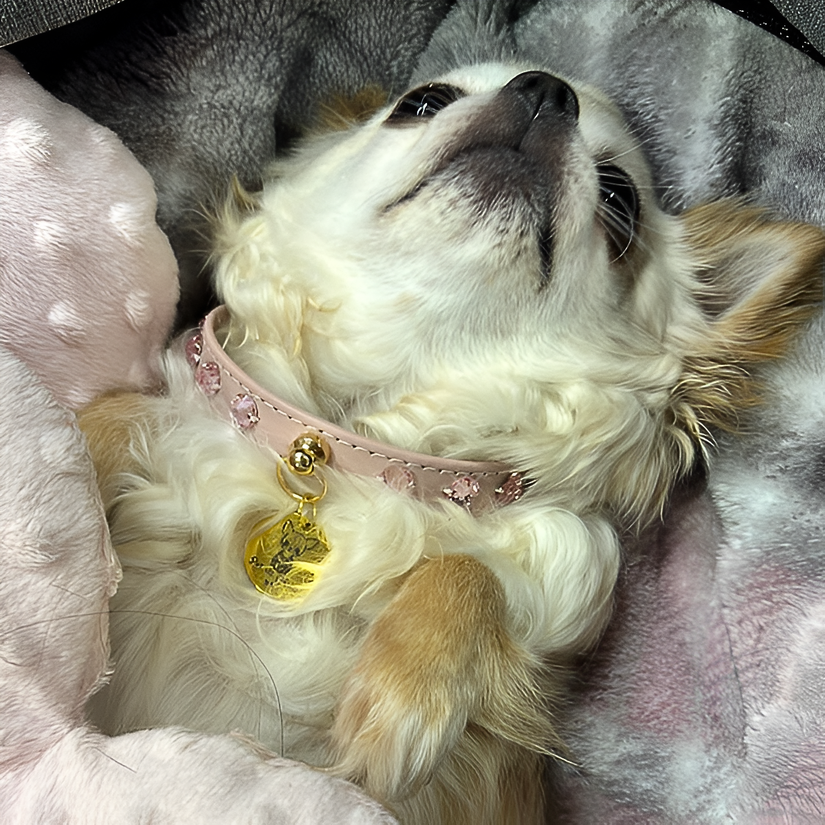 Precioso collar de cuero genuino, color rosa bebé. Sencillo, cómodo y elegante para estar impecable desde el primer momento.