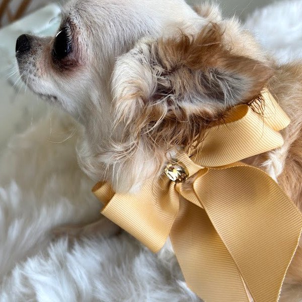 Precioso collar de cuero genuino, color cammel adornado por un imponente lazo en los mismos tonos (grosgain fácilmente lavable) que va embellecido por un formidable cristal Swarovski en su centro . Atemporal, clásico y muy elegante para estar impecable en cualquier momento y ocasión. Tu peque no pasará desapercibido.