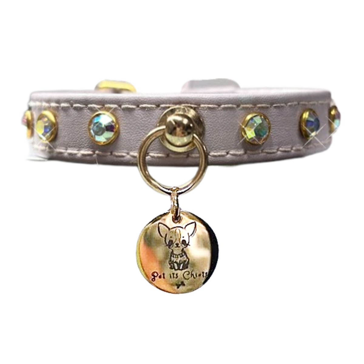 Exquisito collar de cuero genuino color rosa bebé y remache Swarovski. La línea PawRocks, concebida para brillar ostentosamente, no solo realza la belleza de tu pequeño, hace una declaración de estilo incomparable convirtiéndolo en la esencia del glamour en cada paseo.