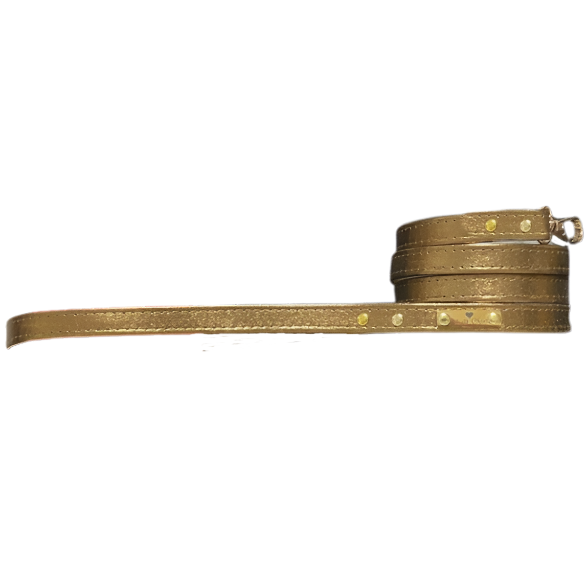 Imprescindible correa de cuero genuino, color oro viejo. Sencilla, cómoda y elegante para estar impecable en cualquier momento y ocasión. Combínalos con tu collar o arnés favorito.