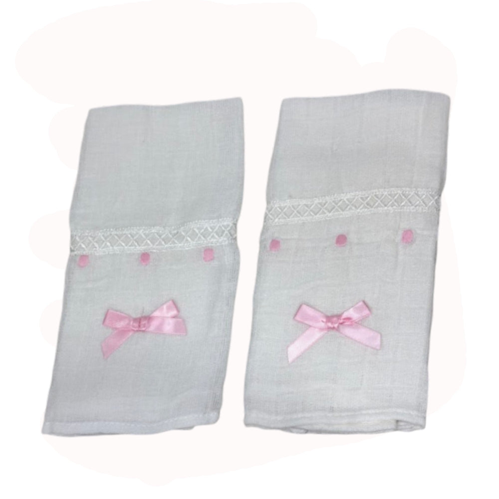 Gasa Bordada Topitos Rosa